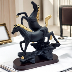 Търсите подарък, който излъчва стил, сила и добър вкус? Тази фигурка на два коня в черно и златно е перфектният избор. Тя въплъщава грация и енергия, а луксозното цветово съчетание я прави запомняща се. Независимо дали е за нов дом, юбилей, или просто като знак на признателност, тази статуетка (30x2..